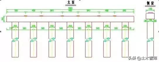 ⑴根据盖梁外廓尺寸按纵、横方向分别计算确定钢筋构造图的绘图比例,绘图比例按2增减,同时计算出立面、平面、侧面、钢筋大样等图上控制座标。