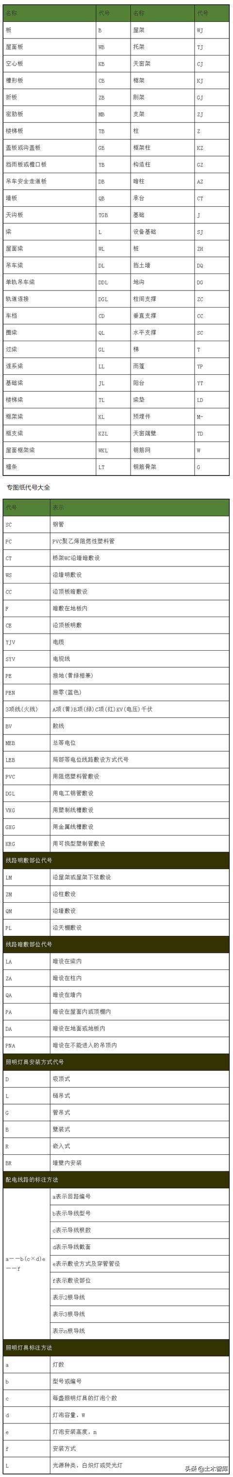 (6)图表对照一份完整的施工图纸,除了包括各种图纸外,还包括各种表格,这些表格具体归纳了各分项工程的做法、尺寸、规格、型号,是施工图纸的组成部分。在施工图纸中常见的表有以下一些。