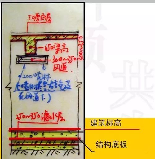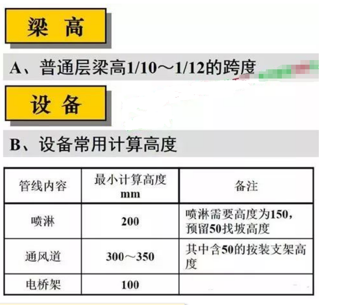 第二:在确定层高时,精确计算设备管线预留高度以及结构梁高。