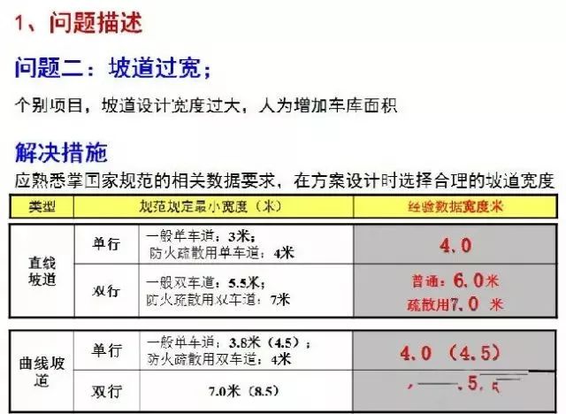车库设计不合理(车道宽度、车位尺寸、转弯半径、入口、车库排水)层高设置不当坡道计算失误车库结构楼面及顶板与梁设计失误。