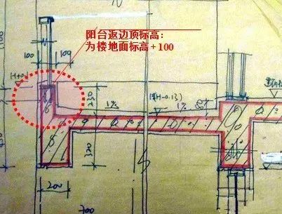 2、经验数据2.1.阳台返边,一般情况均为楼地面标高上返100