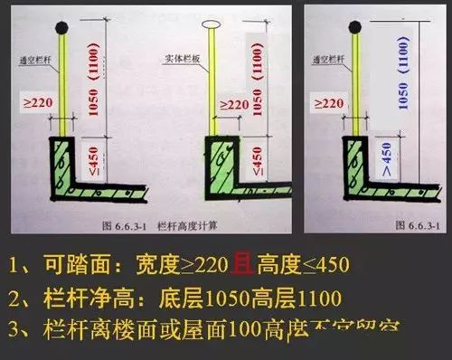 b、梯段净高,包括两种情况:梯段踏步前缘线量至直上方突出物下缘间的铅垂高度;梯段最高和最低一级踏步前缘线以外300范围内量至直上方突出物下缘间的铅垂高度。