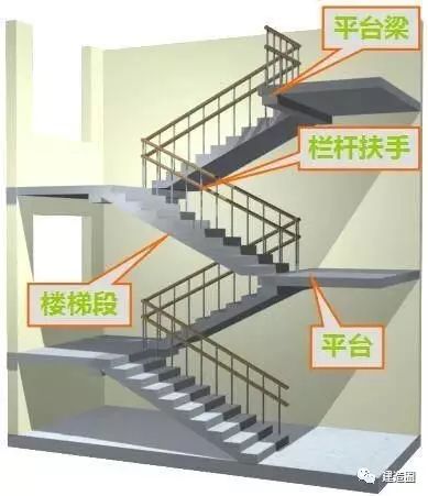 供休息和转换方向的水平构件。有楼层平台和休息平台(中间平台)。