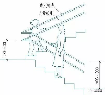 儿童扶手高度: 500~600mm。