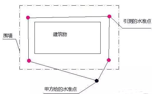 使用甲方给定的水准点之前应仔细校核,如超出允许偏差应查明原因并及时报有关部门。水准点的增设原则:相隔距离一般为150~200 米。增设水准点应与设计单位交的水准点闭合,闭合差不得超限。