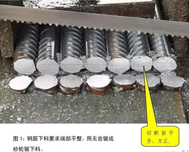 1、 钢筋下料要求端部平整,不得有马蹄形或挠曲,不得用气割下料,可现场用砂轮锯或无齿锯下料。