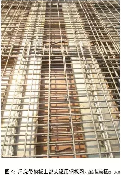 2、现浇板后浇带模板上部侧口模板与钢筋位置锯槽吻合,安装牢固,或采用钢丝(板)网支设牢固,上口两侧加设木方,并用木模板整体封闭、保护,直到砼浇筑时打开。