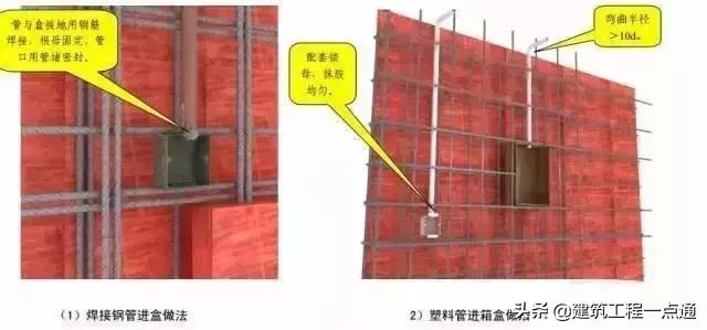 注: 塑料管敷设时,应减少弯曲,当直线段长度超过 15m 或直角弯超过 3 个时,增设接线盒。塑料管在大模墙体内横向敷设时,固定点间距不大于 0.5m。 及时穿好带线,并将管口、盒口、箱口做好有效的封堵。