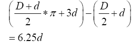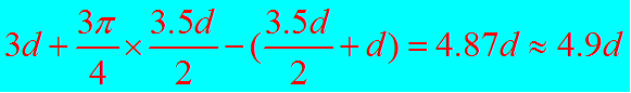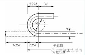 (1.07D+5.57d)+(0.285D+4.785d)=1.355D+10.355d,当取D=2.5d,平直长为5d时,两个弯钩增加值=14d 。