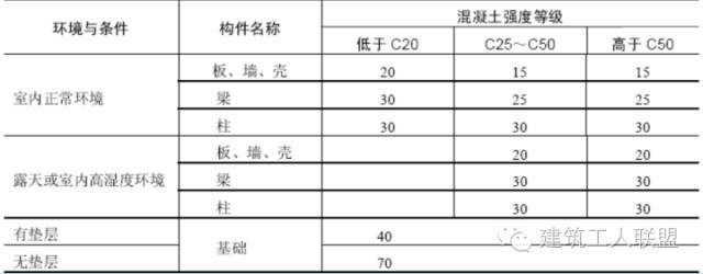1. 混凝土对钢筋的保护层厚度
