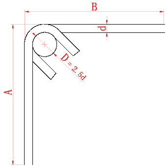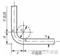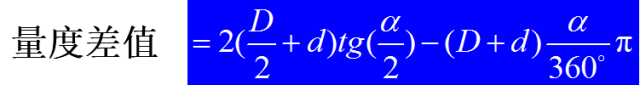 弯曲角度为,弯心直径为D时,量度差值的计算公式如下