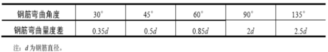 量度差值钢筋弯曲后的外包尺寸和中心线之间的差值。量度差值的大小与钢筋直径、弯曲角度、弯心直径等因素有关。