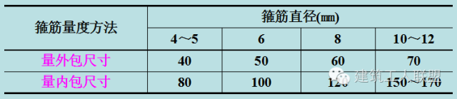 2.施工图中注明的钢筋尺寸是钢筋的外轮廓尺寸(即从钢筋的外皮到外皮量得的尺寸),称为钢筋的外包尺寸,在钢筋制备安装后,也是按外包尺寸验收。