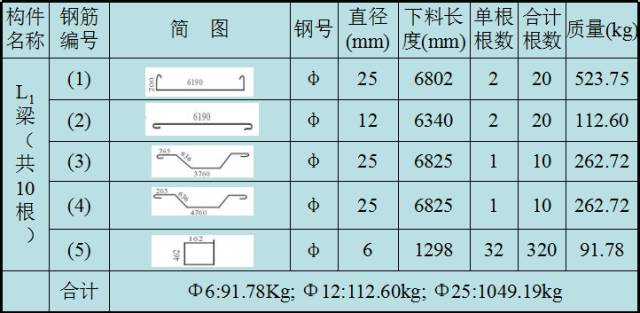 在配料表中需标出每根钢筋的下料长度。下料长度指的是下料时钢筋需要的实际长度,这与图纸上标注的长度并不完全一致。