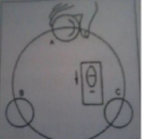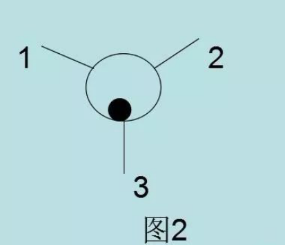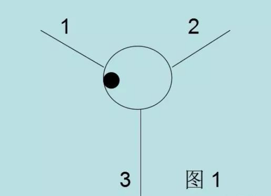 图中1、2、3表示脚架的脚,黑色圆表示气泡,蓝色圆表示仪器基座的圆水泡。