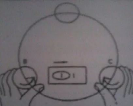 待仪器对中后,观察仪器基座的圆水泡,然后根据水泡来操作脚架。下面举例说明: