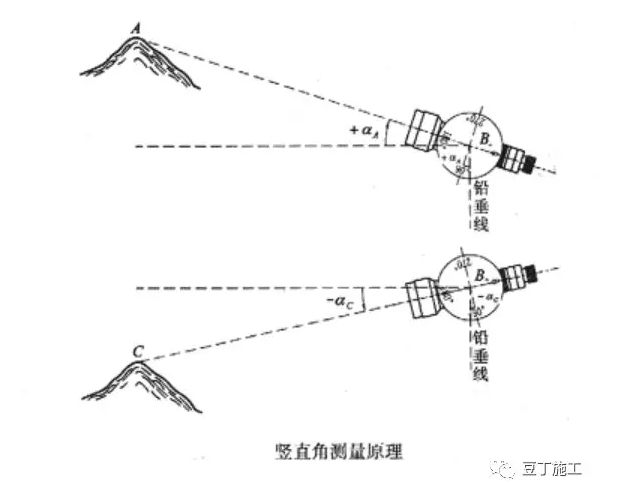 当视线在水平线以上时垂直角称为仰角,角值为正;视线在水平线以下时为俯角,角值为负,如图所示。