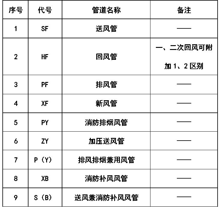 2、暖通空调系统编号、入口编号,应由系统代号和顺序号组成。