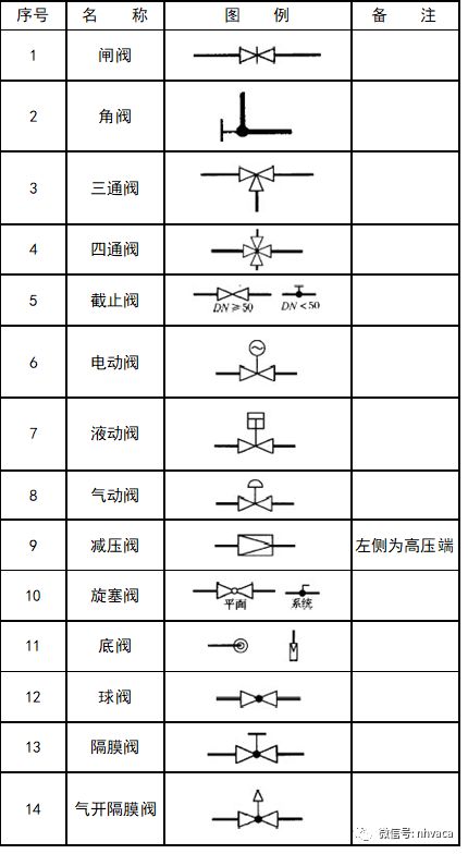 水、汽管道阀门和附件图例: