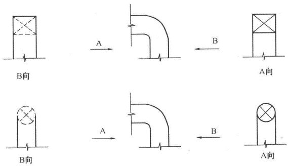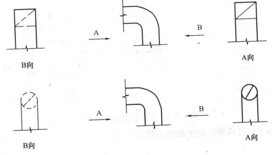 双线管道转向的画法: