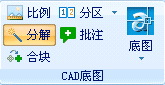 2.系统图是整体块:有些系统图按照上面的框选范围怎么识别都识别不了,当遇到这种情况后查看一下该系统图设计的时候是否为整体块,若为整体块的话需要将系统图进行分解。分解可以在CAD中使用炸开命令也可以在软件中进行分解,软件中分解操作如下:单击CAD底图中的分解底图命令