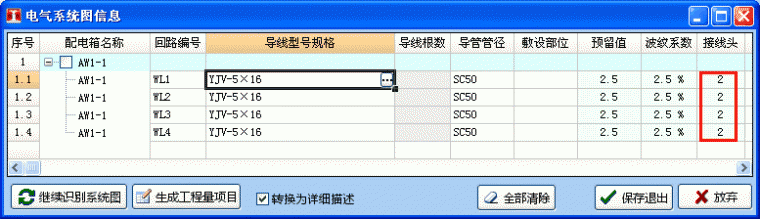 根数2:表示该段管配的2根线,通过系统图替换的方式不会取系统图中的根数。