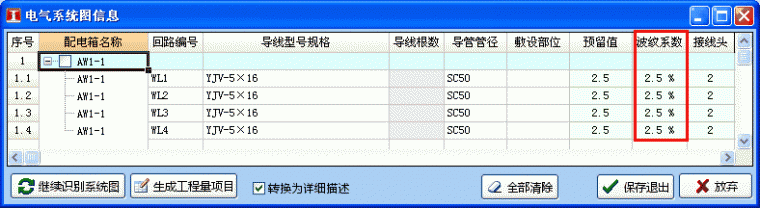 答:在识别系统图的时候若为电缆软件自动设置2.5%的波纹系数。如图:
