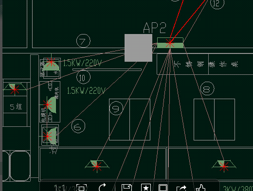 2.在该位置出线为示意,用一根公共的线表示或多个回路为一个点发射出来的,如图: