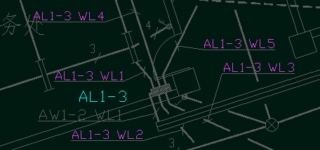 3.其他位置不同回路相交:无论是配电箱的出线位置还是其他位置本来不是一个回路,但是相交了且没有做断线的表示方式(设计中两条线相交,但实际是有高差的,会使用断线的方式断开,表示实际不相交),识别在了一起。像这种情况查看设计图在那个位置本身不相交,但没做断线处理的位置,在底图状态下选择任意一个回路在该位置的线将其隐藏,分别识别各自回路,识别完成后被隐藏的这段管线没有识别到使用手工绘制的方式将其工程量添加上去。