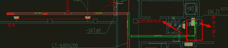 ,单击该回路的起点,起点到进桥架的位置按照设计图进行绘制,然后单击出桥架的终点,桥架内的电缆软件自动布置完成,同样出桥架后到配电箱的管线按照设计图进行绘制,那么该回路就计算完成了。如下图: