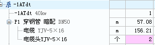 在系统图中设置预留值后生成的项目在配线项上自动设置其预留工程量,如图: