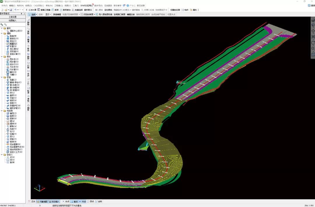 通过识别道路平面设计图、纵断面导入实测原地面数据或识别横断面图形成真实三维路基模型,按照实际模型自动计算填、挖、运土石方及护坡、清表、路基换填等工程量。