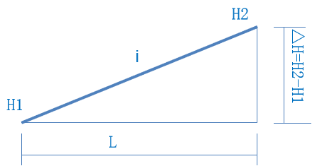 纵坡:路线的纵线坡度,为高差与水平距的比值,用i表示,i=(H2-H1)/L*100%,如下图所示