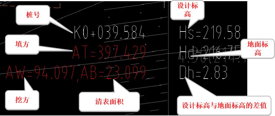 填挖高度=设计高程-地面高程(正值为填高,负值为挖深)