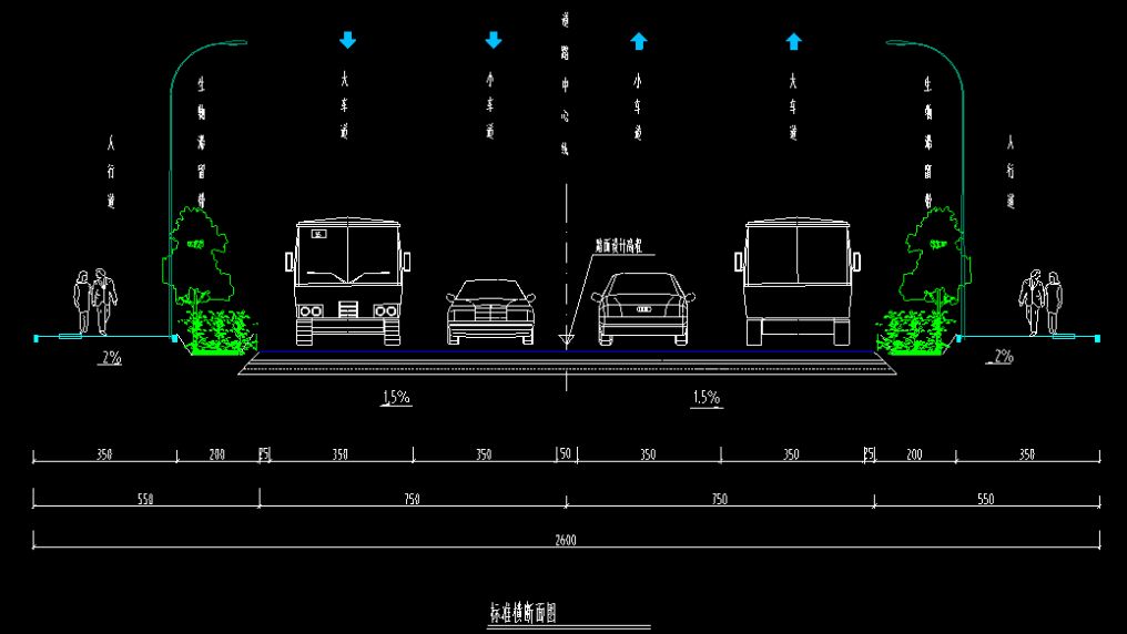 市政道路工程施工图识图主要分为四部分:平面图、断面图、道路横断面图、人行道及附属工程。