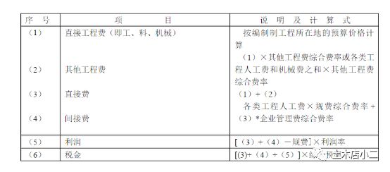 2)建筑安装工程费分为:直接费、间接费、利润、税金