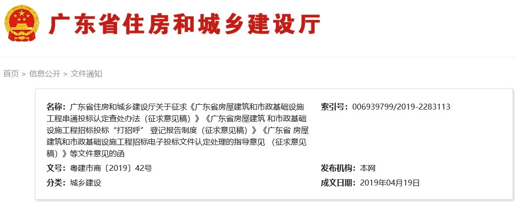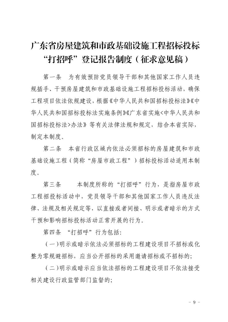 《广东省房屋建筑和市政基础设施工程招标投标打招呼 登记报告制度(征求意见稿)》