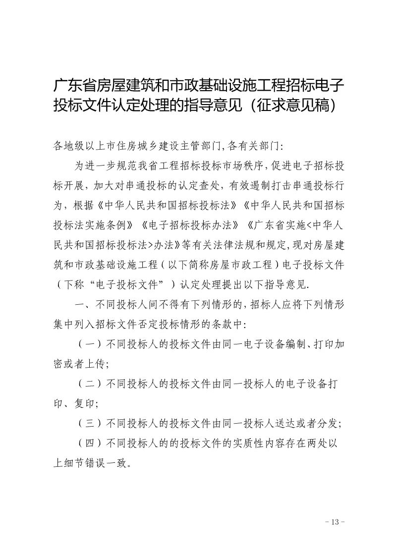 《广东省 房屋建筑和市政基础设施工程招标电子投标文件认定处理的指导意见 (征求意见稿)》等文件意见的函
