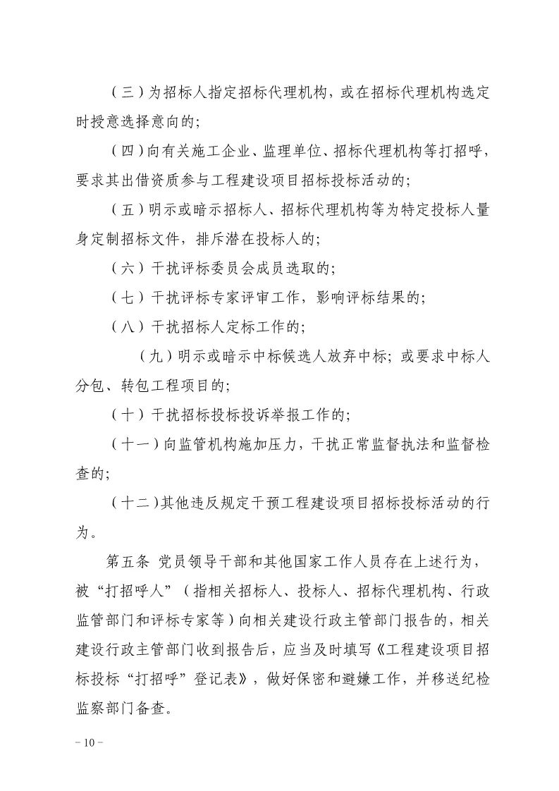 2、被打招呼人(指相关招标人、投标人、招标代理机构、行政监管部门和评标专家等)应向相关建设行政主管部门报告,相关建设行政主管部门收到报告后,应当及时填写《工程建设项目招标投标打招呼登记表》,做好保密和避嫌工作,并移送纪检监察部门备查。