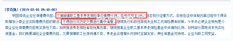 1、下调城镇职工基本养老保险单位缴费比例,各地可降至16%!不得自行对历史欠费进行集中清缴!