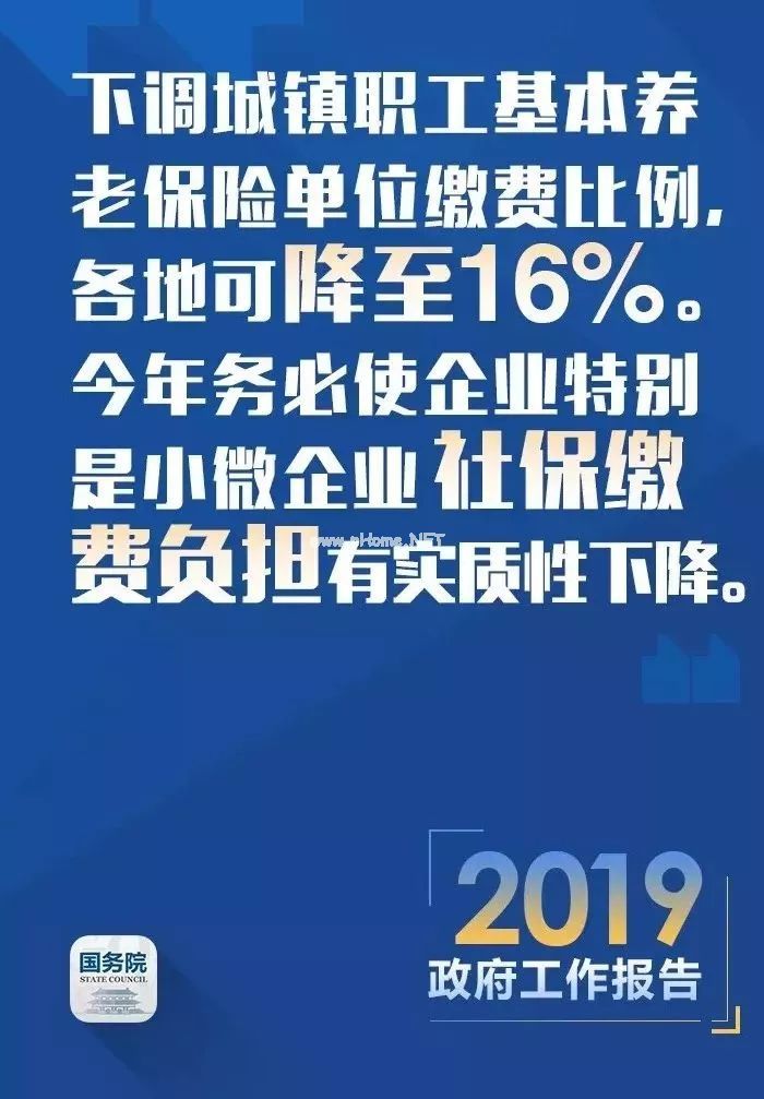 下调城镇职工基本养老保险单位缴费比例,各地可降至16%。稳定现行征缴方式,各地在征收体制改革过程中不得采取增加小微企业实际缴费负担的做法,不得自行对历史欠费进行集中清缴。继续执行阶段性降低失业和工伤保险费率政策。