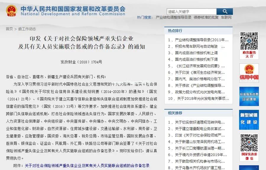 18年11月29日,28部委联合签署了《关于对社会保险领域严重失信企业及其有关人员实施联合惩戒的合作备忘录》(下称备忘录),对社会保险领域严重失信企业及其有关人员实施联合惩戒。