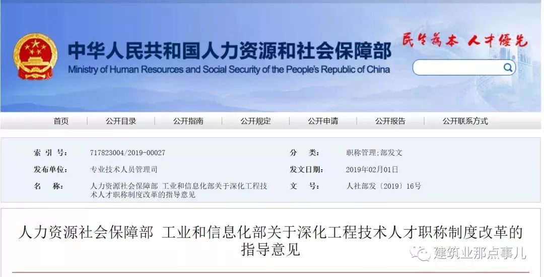 2019年2月1日,人力资源社会保障部官网发布《关于深化工程技术人才职称制度改革的指导意见》,意见提出: