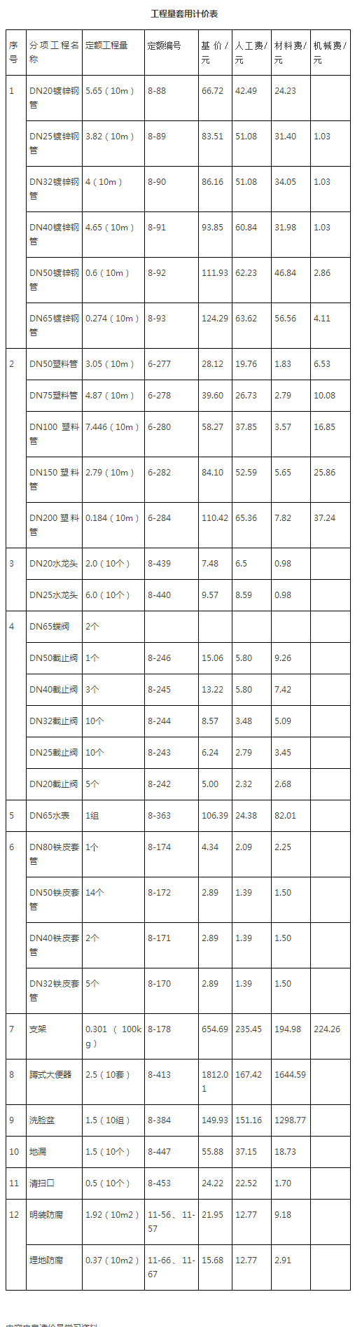 给水管道为镀锌钢管,需要刷油防腐处理,分明装、埋地两部分,明装部分刷银粉两道,埋地部分刷沥青油两道。