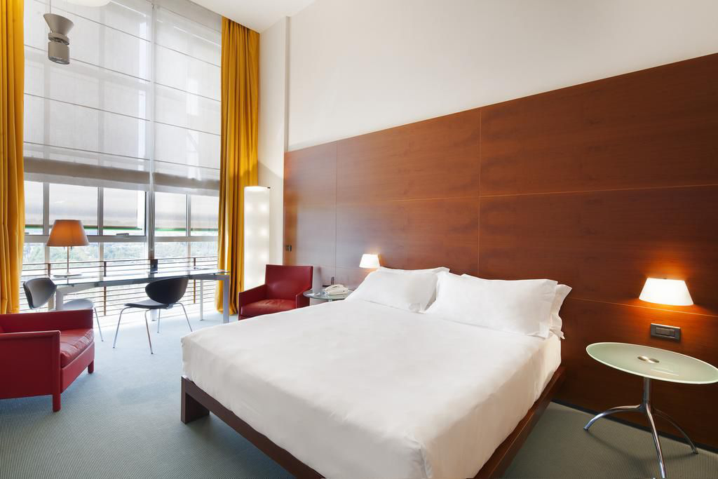 意大利 NH 酒店在中庭空间重新布置了绿意盎然、层次丰富的植被绿化,成为旅客户外就餐、休闲的场所,同时中庭的景观也成为了周边客房的风景。