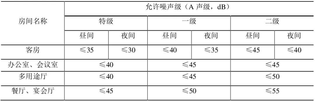 酒店室内允许噪声级