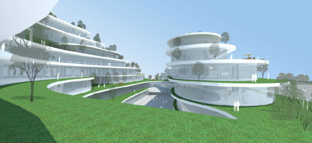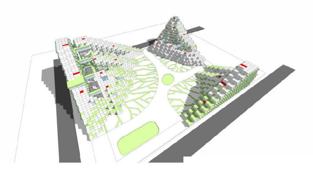 5、巨大空腔问题依然存在,在等高线收缩过程中逐步消失,因此在底层部需要特殊户型研究,如果每层都是空中别墅,那么为什么不能有空中地下室呢?