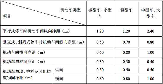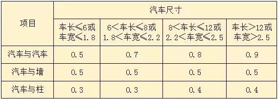 5、机动车之间以及机动车与墙、柱、护栏之间的最小净距。