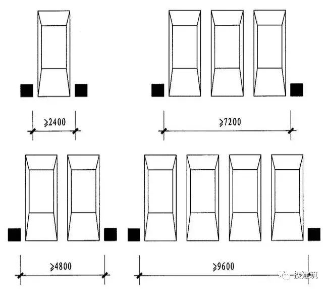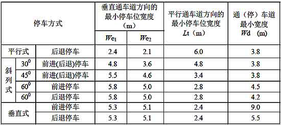 停车方式可采用平行式、斜列式(倾角30、45、60)和垂直式或混合式。