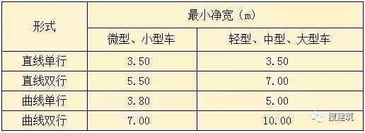 2.出入口可采用单车道或双车道,坡道最小净宽应符合下表的规定。